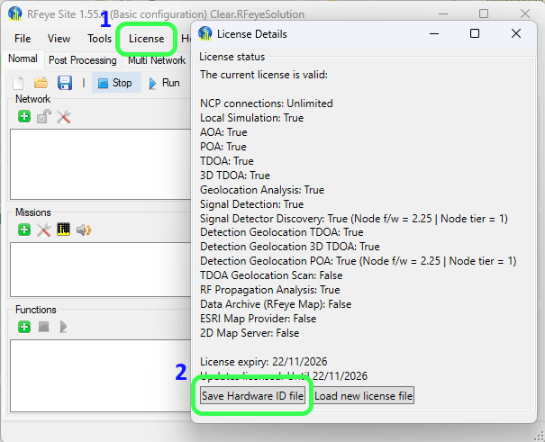 - Contact the CRFS Customer Support to request the RFeye Site licence file and include the .hid file